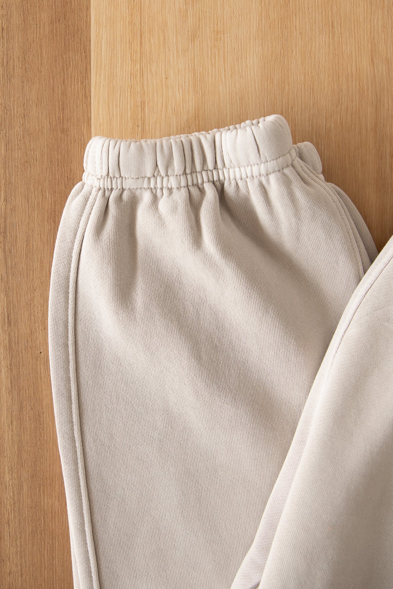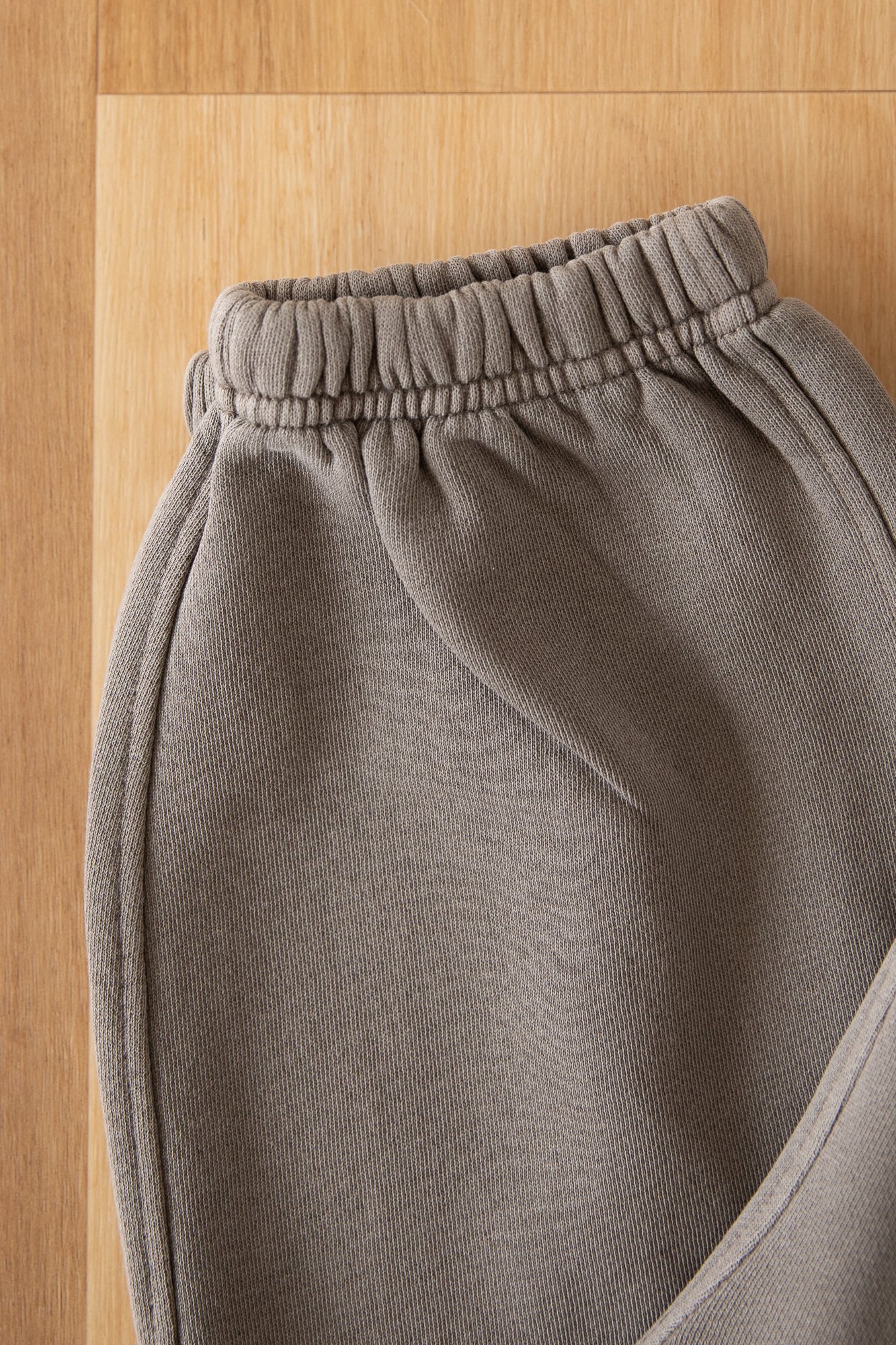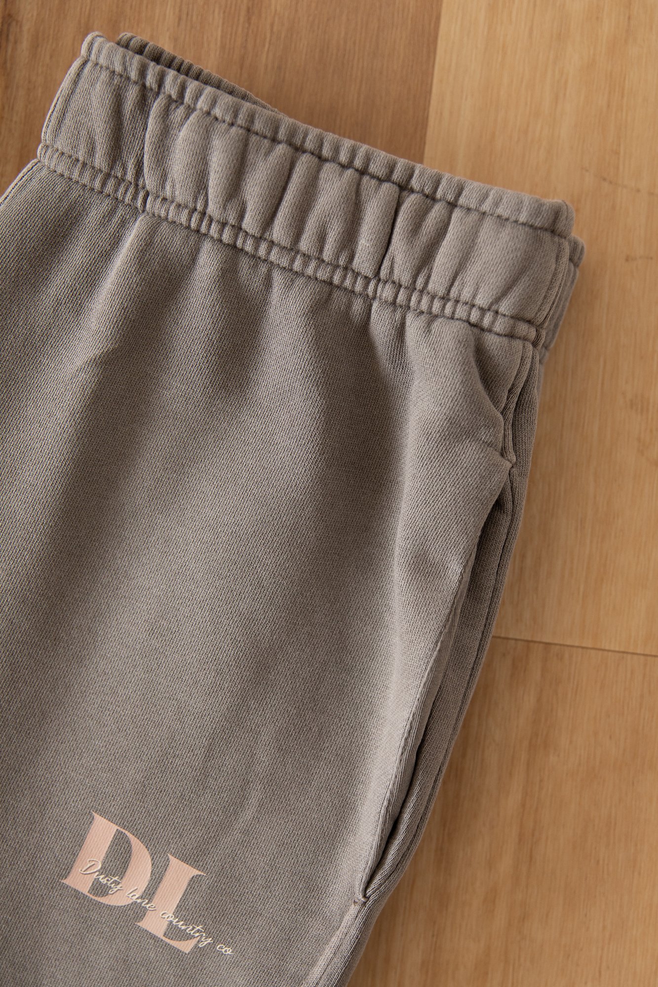 Self-fabric elasticated waistband & hem cuffs, garment dyed, tonal internal drawcord, 2 side pockets, single pocket at back, preshrunk to minimise shrinkage?
